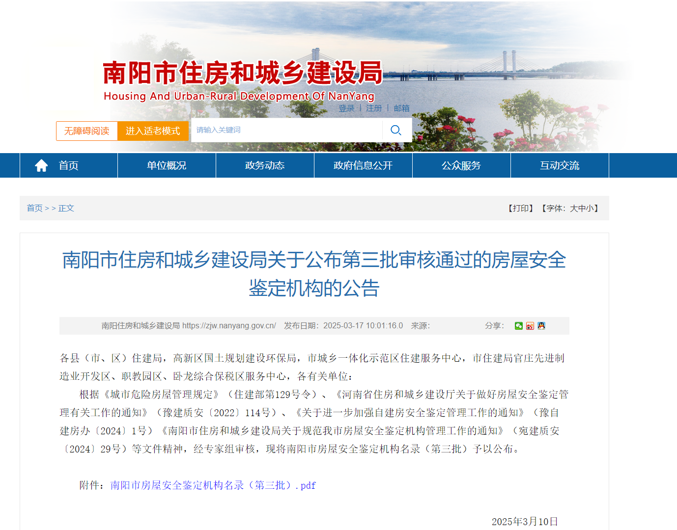 熱烈祝賀我司入冊(cè)南陽(yáng)市房屋安全鑒定機(jī)構(gòu)第三批名錄?。。?