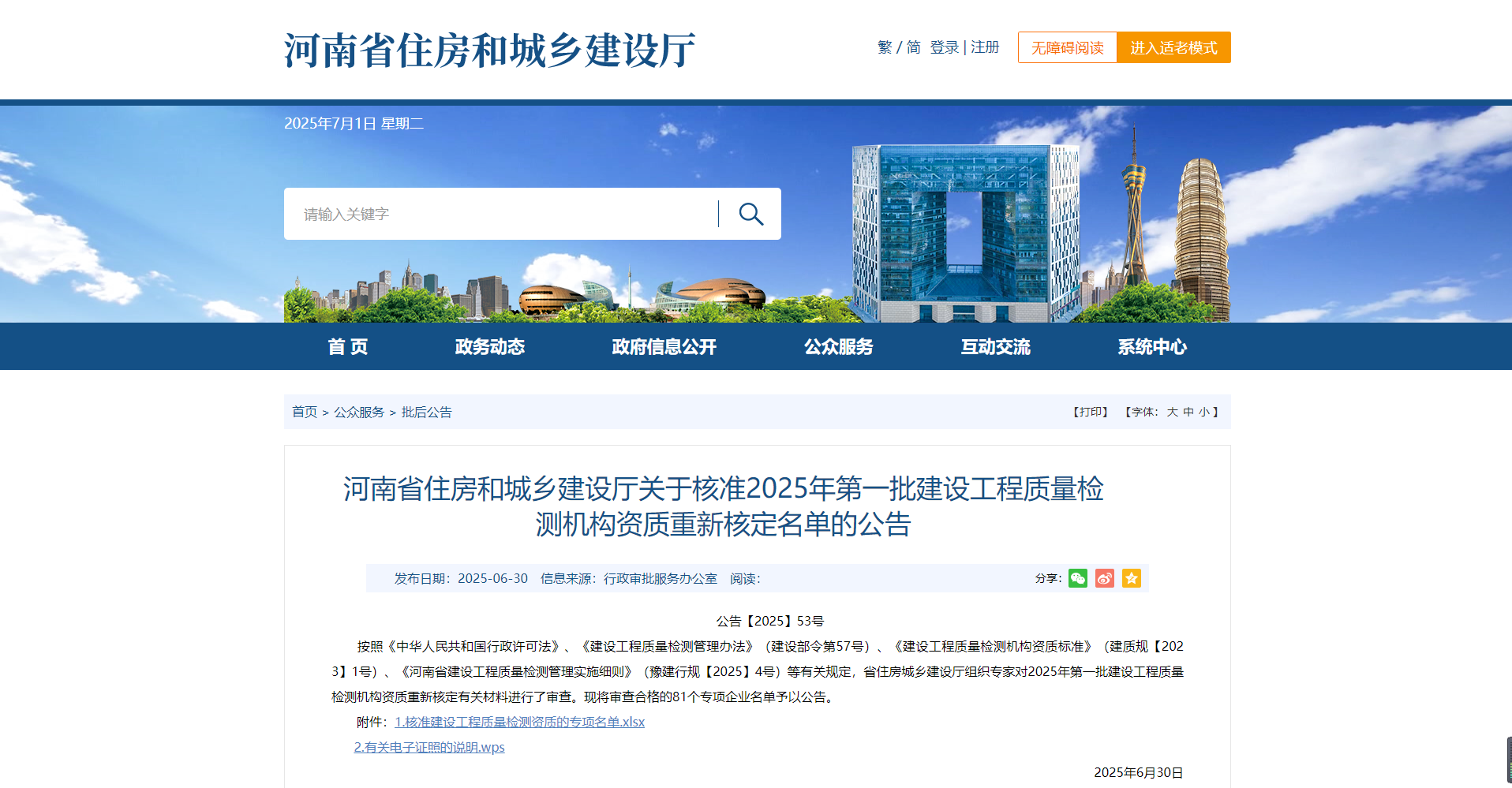 熱烈祝賀我司通過(guò)河南省住建廳2025年第一批建設(shè)工程質(zhì)量檢測(cè)機(jī)構(gòu)資質(zhì)重新核定?。?!